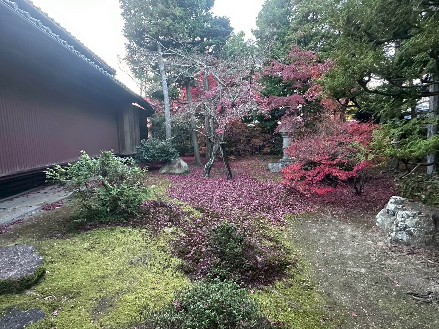 境内は真っ赤な落ち葉の絨毯で、