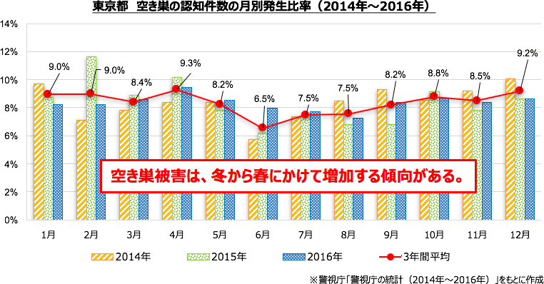 実は空き巣被害は冬から春にかけて増加傾向になるんです。