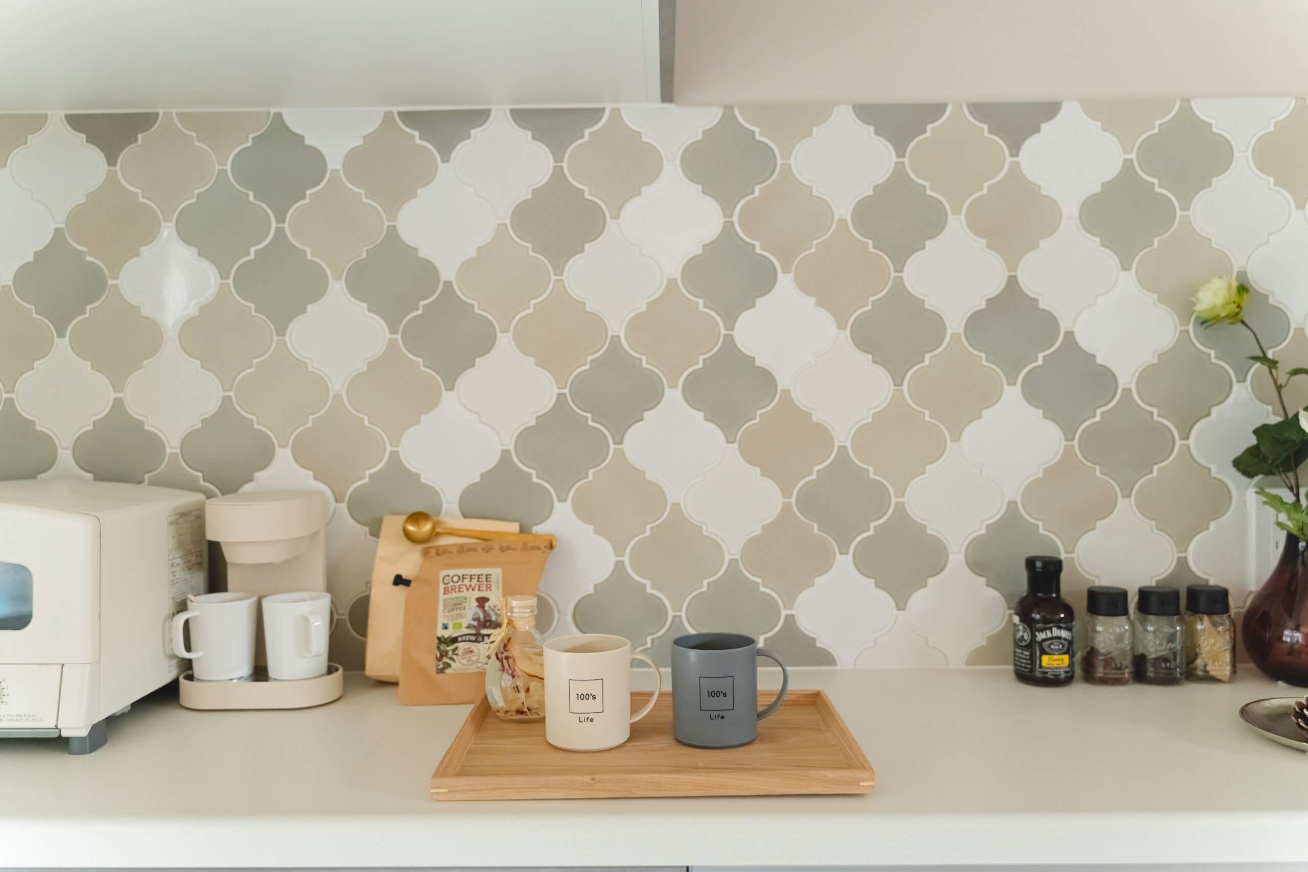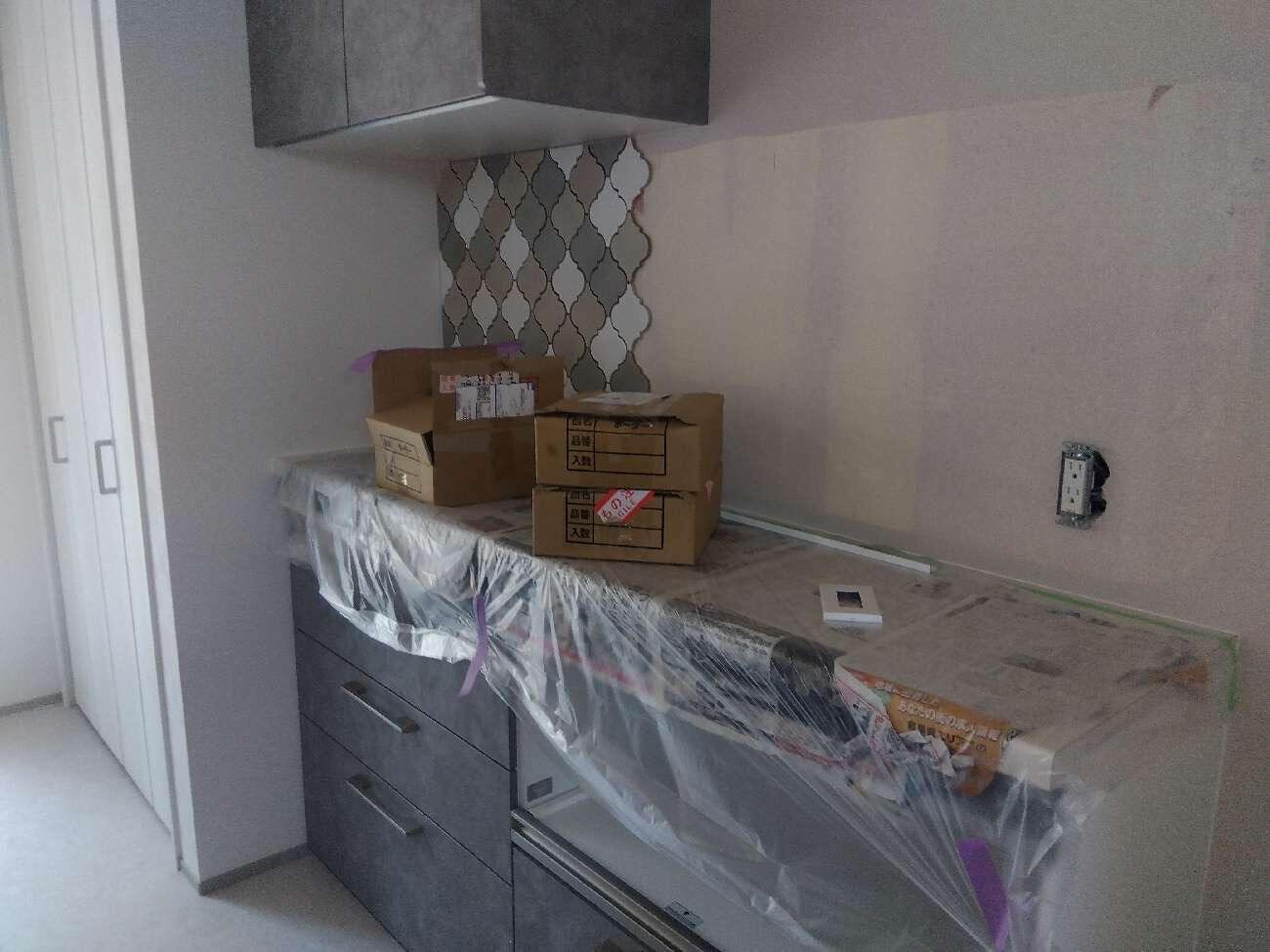 キッチンに取り入れたモロッカンタイルの施工が、いよいよ大詰めを迎えています。