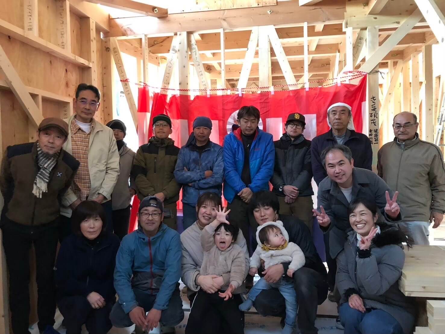 日暮れ前に無事骨組みを作り終わり、棟木を上げることが出来ました(/・ω・)/