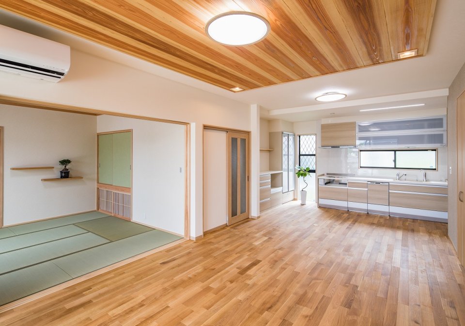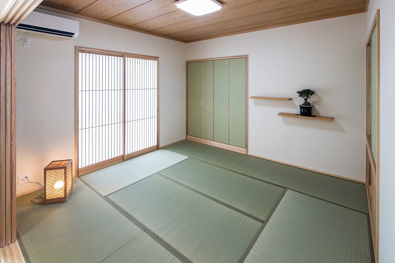 和室は造作棚と収納スペースを設置。