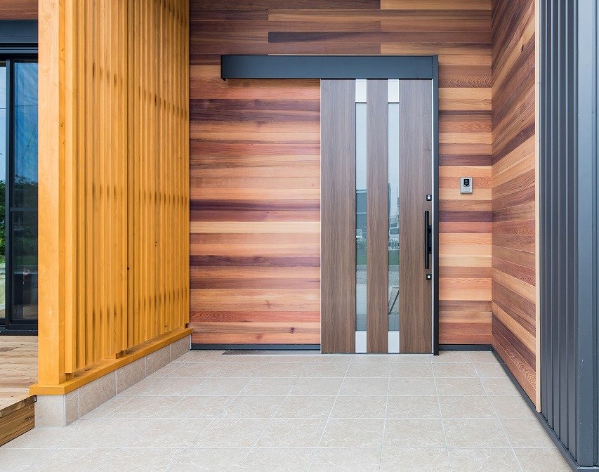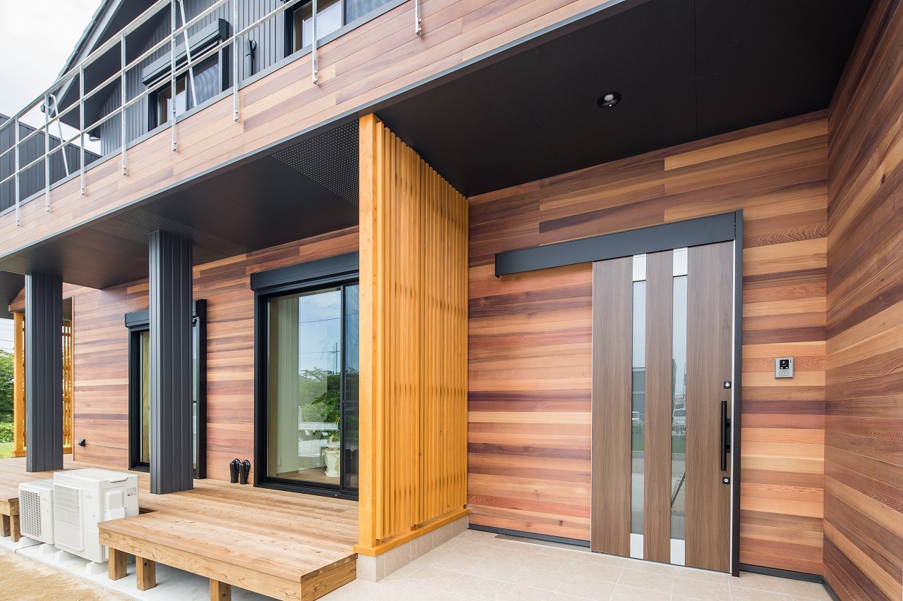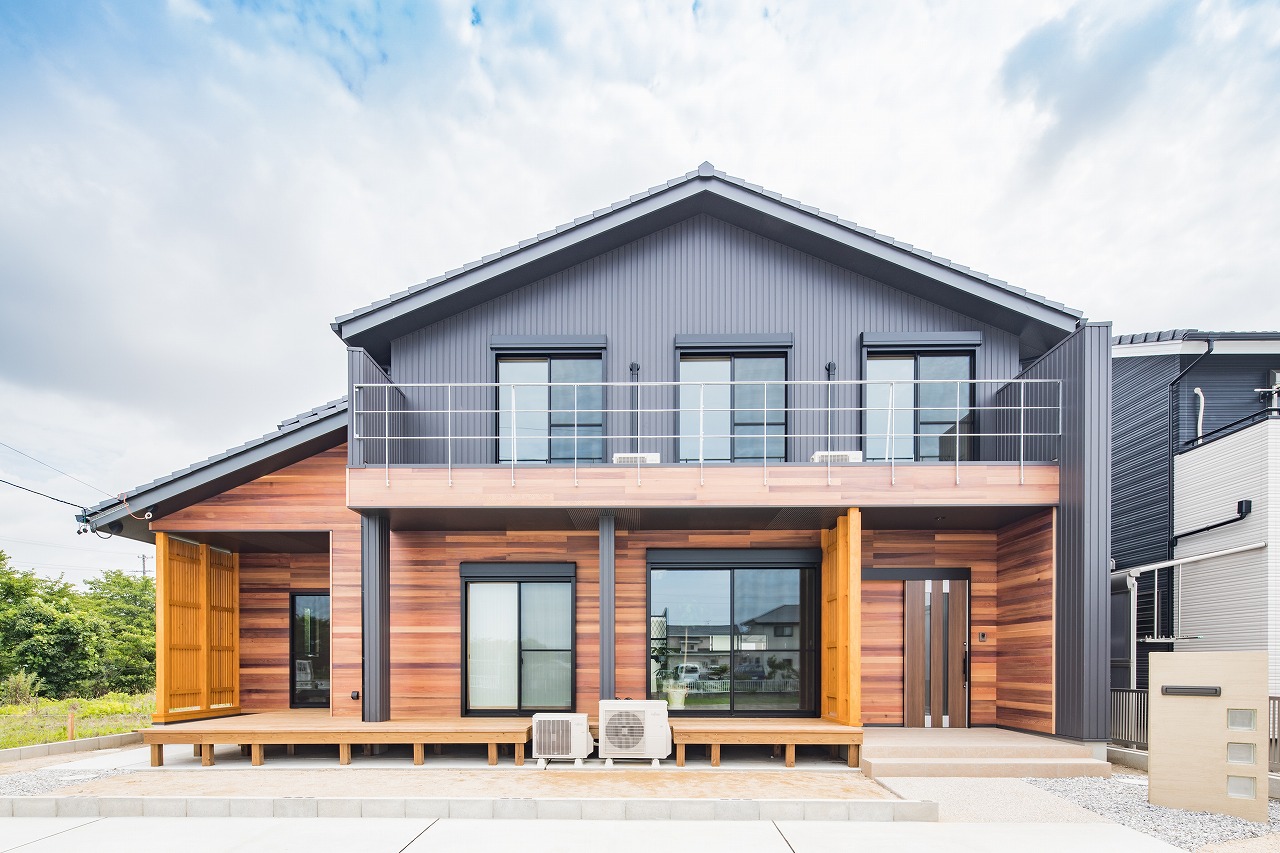 現代的なデザインと木の温かみが融合した家