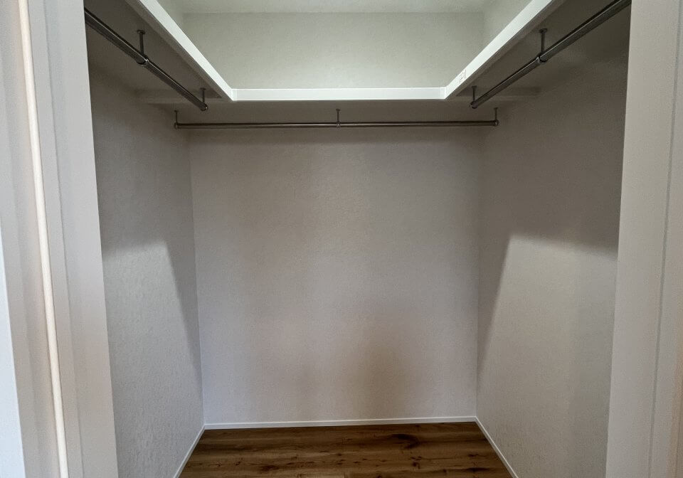 片側には無垢材の木目を活かした「身長計」を造作。お子さまの成長を刻みながら、家族の思い出が増えていく、温もりあふれるポイントに。