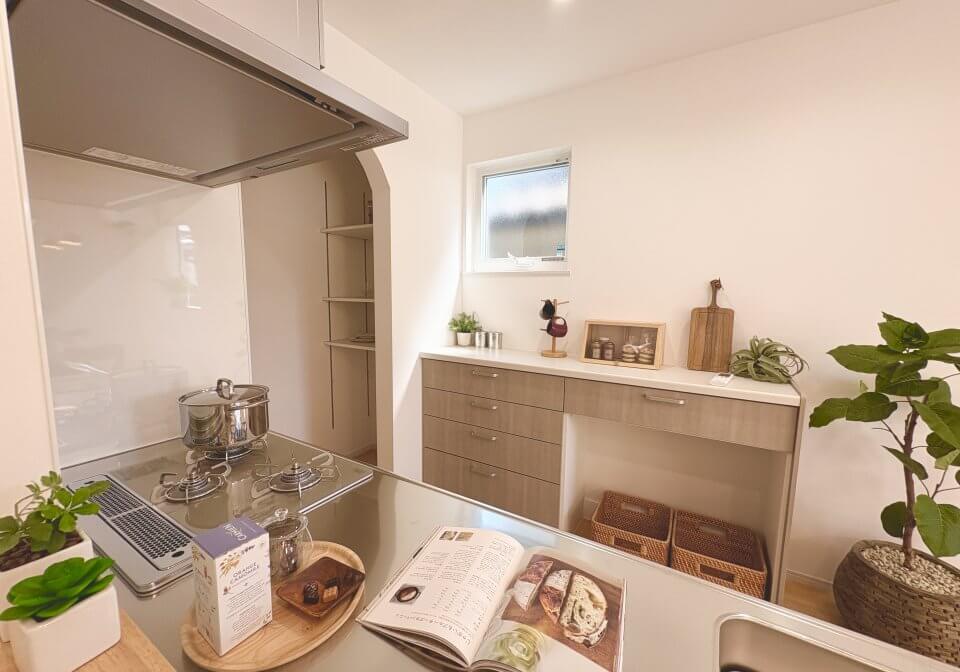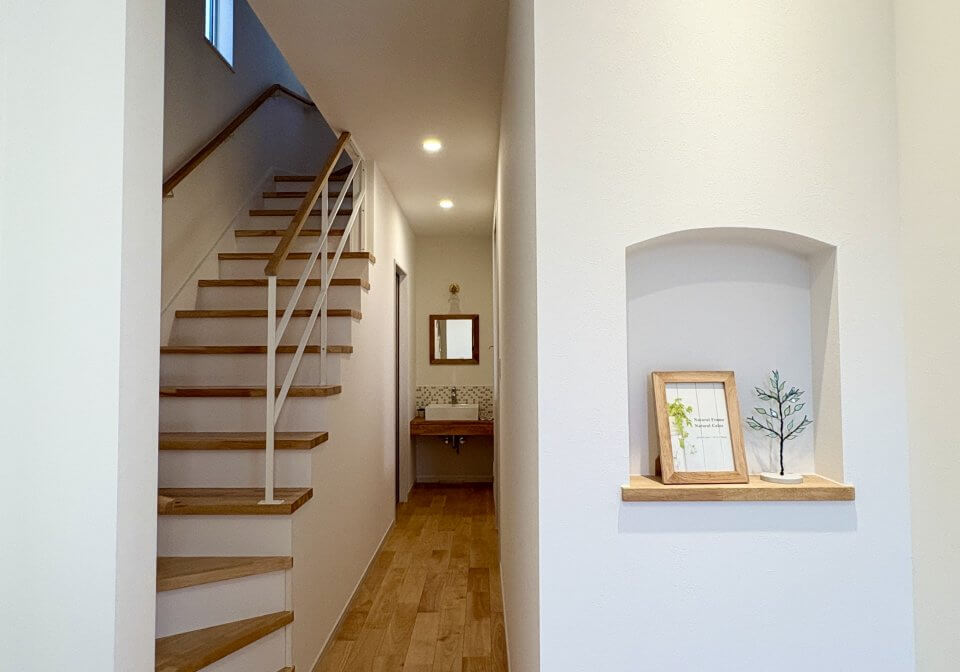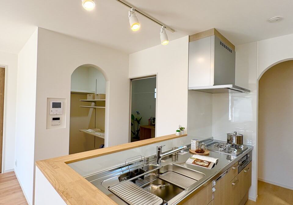 また、キッチンやリビングのパントリー入り口には、やわらかな曲線が魅力のR壁を採用。